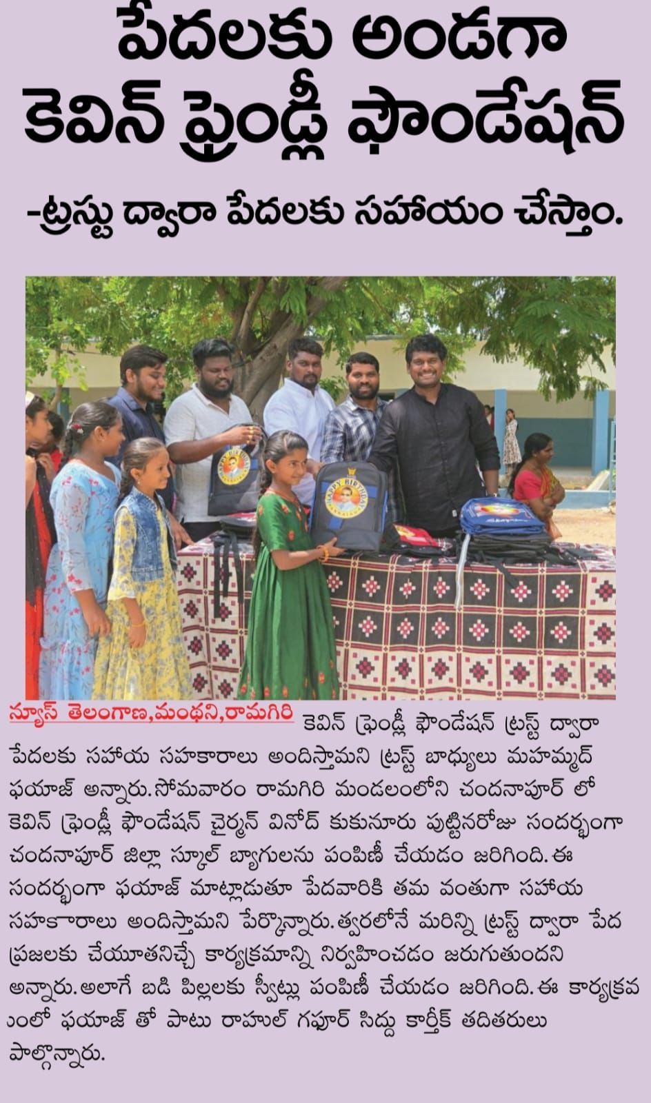 Kavin Friendly Foundation chairman birthday celebration at school